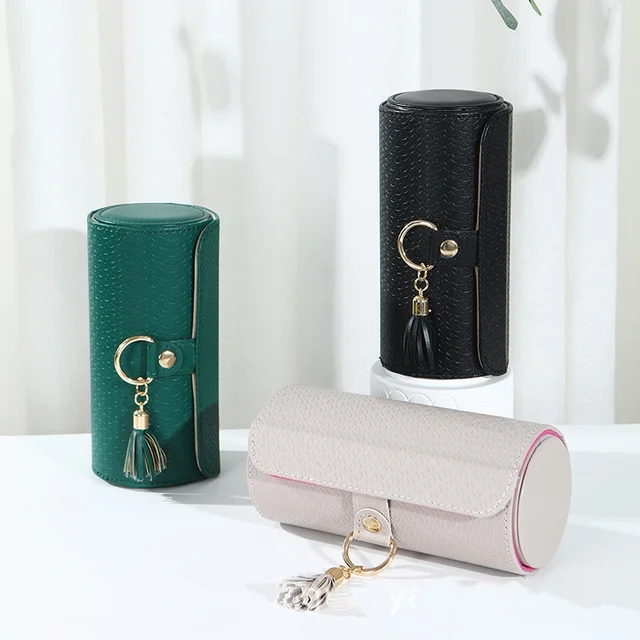 New Creative Cylinder Flannel Three-Layer Ring Earrings Organizer Portable Women's Jewelry Case Spot Wholesale Gift Box