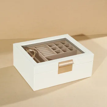 Spot Double Layer Jewelry Storage Organizer with Lock Ring Earrings Necklace Storage Box Large Capacity PU Leather Storage Box