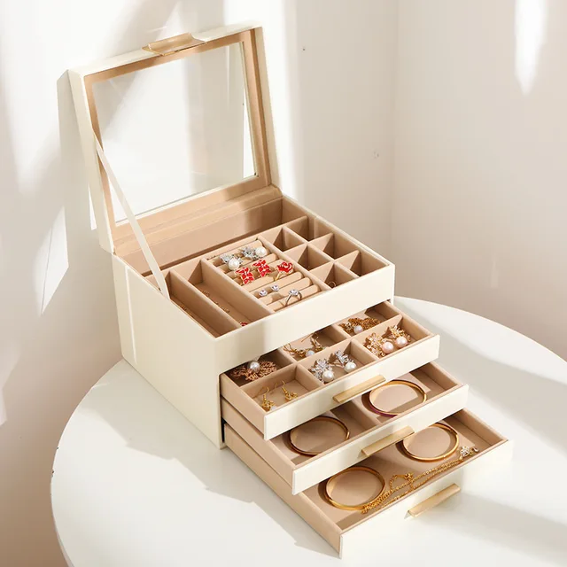 New Double Triple Layer Portable Combination Lock Design Drawer Jewelry Box High-end Jewelry Storage Organizer Earrings Jewelry